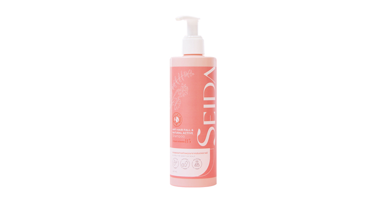 แชมพู SEIDA: Anti Hair Loss Shampoo Plus Vitamin B5 – ประกอบด้วยสารบำรุงตัวสำคัญ 4 Plant Hair Complex สารสกัดที่สามารถจับกับ receptor แทนฮอร์โมน DHT ได้ และมีวิตามิน B5 ช่วยกักเก็บความชุ่มชื่นให้หนังศีรษะและเส้นผม ทำให้รากผมแข็งแรงยิ่งขึ้น แชมพูเป็นแชมพูสูตรอ่อนโยน คุณแม่ตั้งครรภ์สามารถใช้ได้ (ไม่มีส่วนประกอบจากสารอันตราย เช่น SLS, SLES, Parabens เป็นต้น)